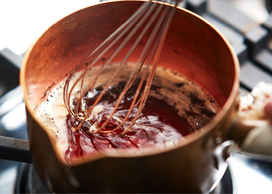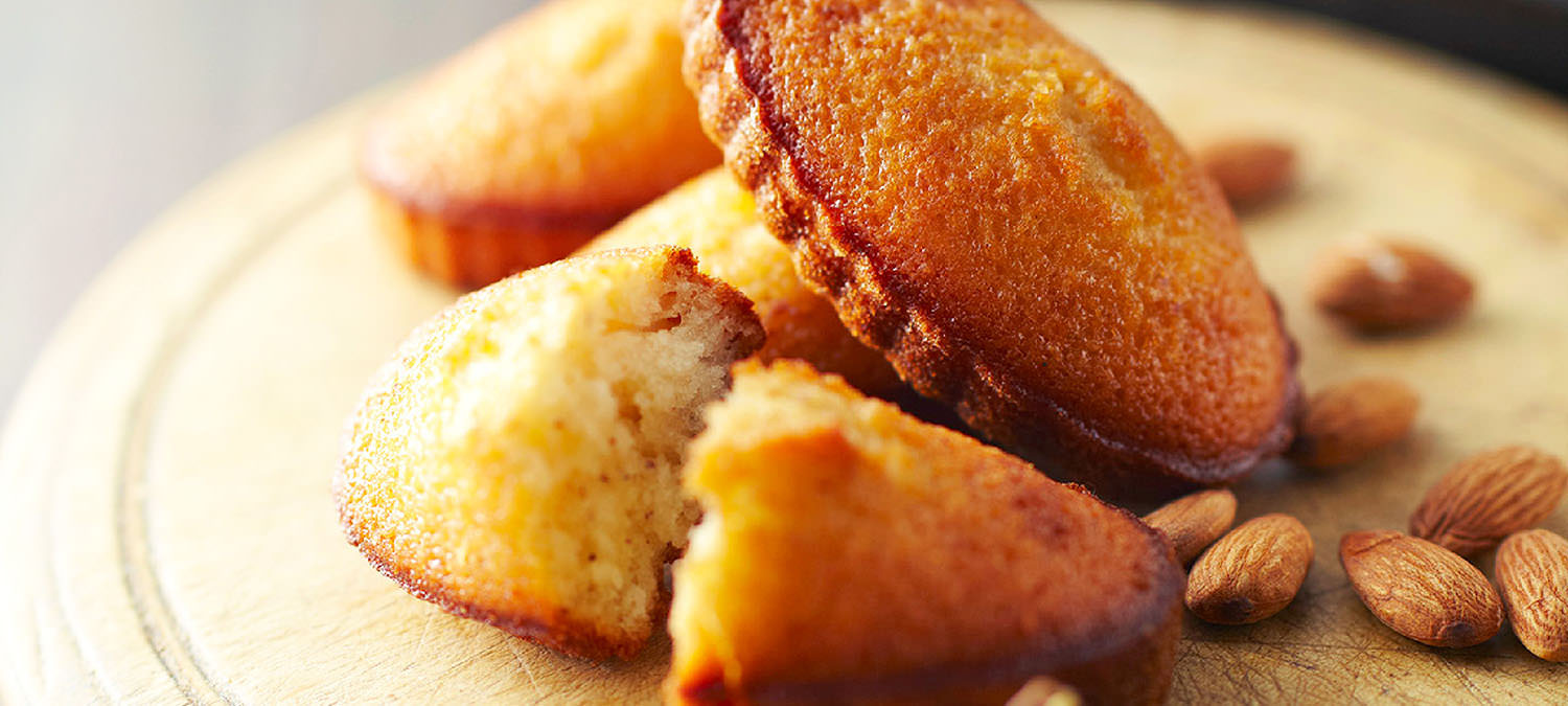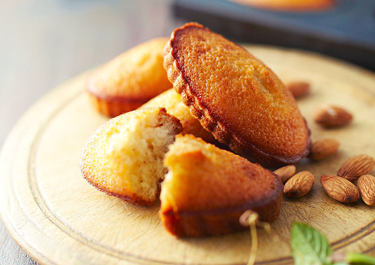 フィナンシェに使用するバターは、焼き上げた際にしっかりとバターの風味が広がるよう香り高いバターを使用し、さらに鍋でしっかりと火を入れて程よい頃合まで焦がした「焦がしバター」 を作ってから生地とあわせています。またアーモンドは皮付きのアー モンドプードルをブレンドして使用しています。それぞれ深いコクと 香ばしさを引き出すために欠かせません。