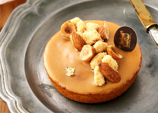 〈キャラメル・サレ〉GÂTEAU NANTAIS濃厚なキャラメルと発酵バターを合わせた生地に、ゲランドの塩を合わせた塩キャラメルのアイシングと、香ばしいナッツ、シュトロイゼルを飾りました。 -