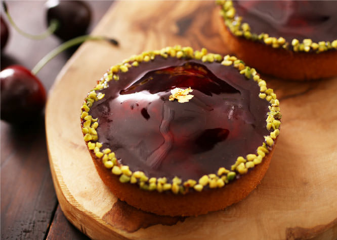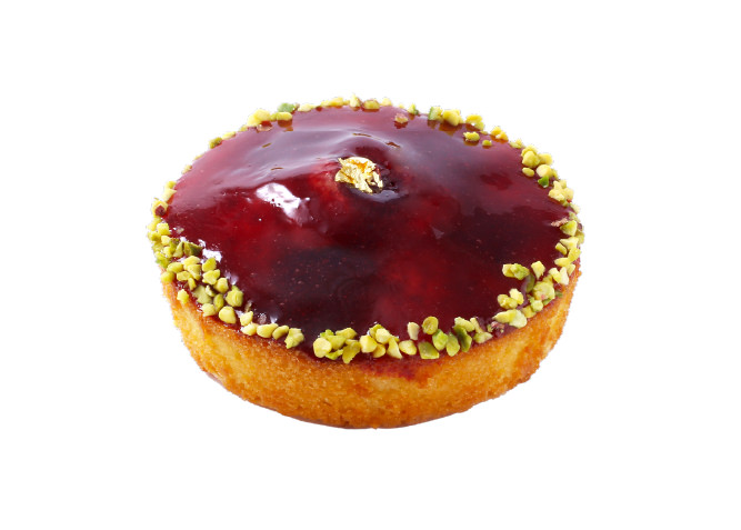 〈グリオット・ピスターシュ〉GÂTEAU NANTAIS洋酒に漬け込んだグリオットチェリーを入れて焼き上げ、甘酸っぱいグリオットのコンフィチュール、ピスタチオで仕上げました。