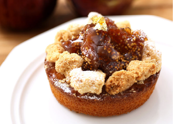 〈無花果とキャラメル〉GÂTEAU NANTAIS発酵バターの風味豊かなキャラメル生地に、 白ワインに漬け込んだ芳醇な無花果と、さくさくと香ばしいシュトロイゼルを飾りました。 -